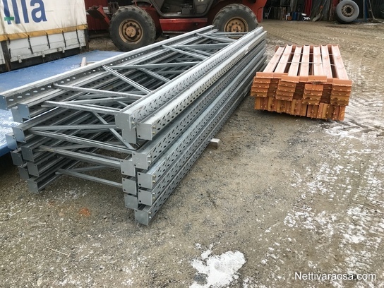 Myynnissä erä Kasten kuormalavahyllyä, jolla saa jo pitkänkin seinustan täytettyä. Kasattuna 23,5,m leveä ja 4,9m korkea kokonaisuus.