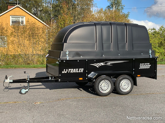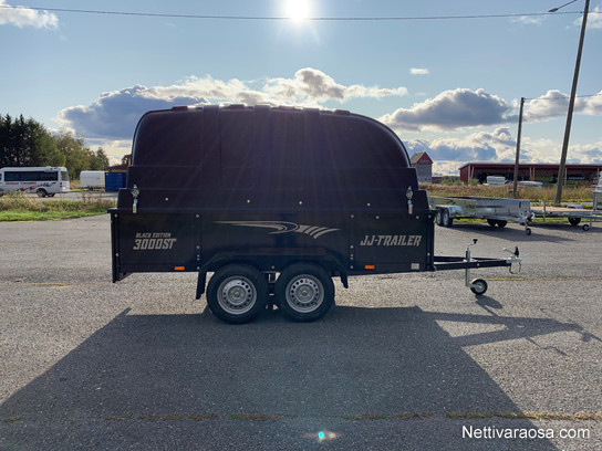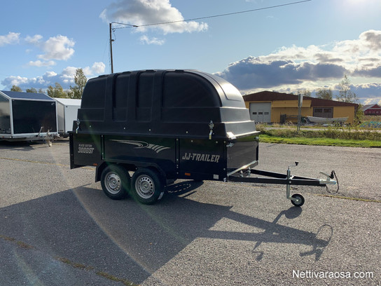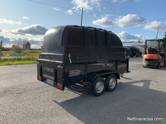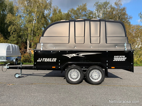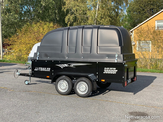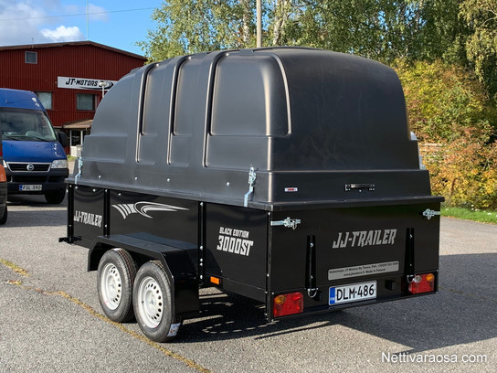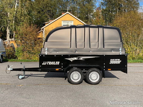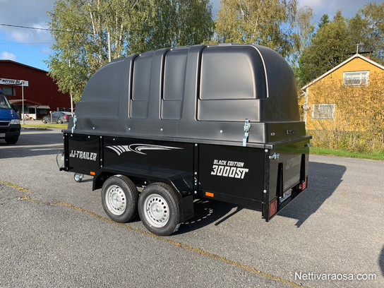 JJ-Trailer 3000ST / 50 black edition on osaksi hitsaamalla ja osaksi pulttiliitoksin valmistettu kevytperävaunu. Kärryssä on hitsaamalla valmistettu keskikehä joka on upottamalla kuumasinkitty. Kehä on osa kantavaa runkoa. Laidan korkeus 35 tai 50cm, SSAB:n sinkitystä teräksestä. Kärryssä on kaasujousitoiminen kippi, nokkapyörä, lehtijouset ja kaasuiskarit. Tyyppihyväksytty rakenne. KATSO LISÄTEDOT ja huomioithan että kuvan kärryt ovat esimerkillisiä. Hinnat sis alv.