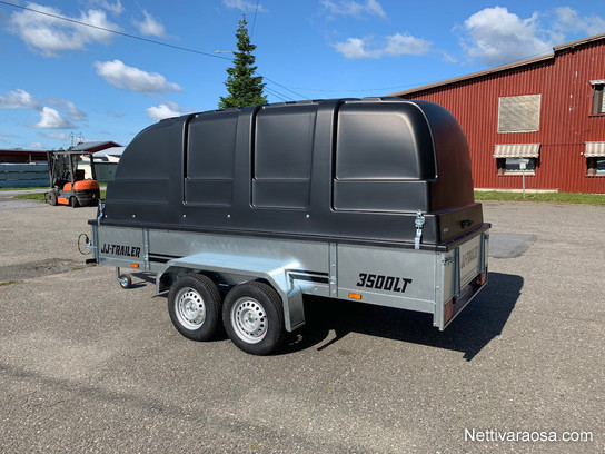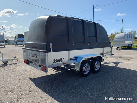 JJ-Trailer 3500LT / 35 on osaksi hitsaamalla ja osaksi pulttiliitoksin valmistettu kevytperävaunu. Kärryssä on hitsaamalla valmistettu keskikehä joka on upottamalla kuumasinkitty. Kehä on osa kantavaa runkoa. Laidan korkeus 35 tai 50cm, SSAB:n sinkitystä teräksestä. Kärryssä on kaasujousitoiminen kippi, nokkapyörä, lehtijouset ja kaasuiskarit. Tyyppihyväksytty rakenne. KATSO LISÄTEDOT ja huomioithan että kuvan kärryt ovat esimerkillisiä. Hinnat sis alv.