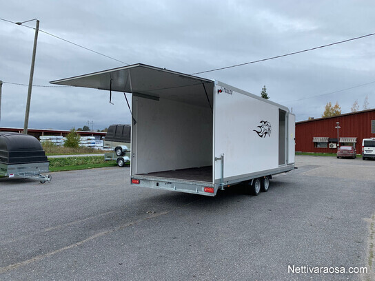 JJ-Trailer Eagle 6000FB - 27 on lavettimallin umpikärry 2700kg kok painolla. Lavakoko 2100x6000, tai 2500x6000, 1800mm sisäkorkeus. Kärryssä on kippi vakiona. Onnistuu myös rahoituksella jopa ilman käsirahaa ja jopa 0% korolla (vaatii luottopäätöksen) Huomioithan että kuvissa olevat kärryt ovat esimerkillisiä. KATSO LISÄTIEDOT.