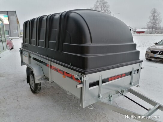 Lavakoko 3, 50 x 1, 50 x 0, 42. Kippi, nokkapyörä, ajosilta takalaita, 100 cm kuomu. Sisäkorkeus noin 140 cm. Hitsattu ja kuumakastamalla sinkitty runko. Perävaunun pohja on 12 mm muovipinnoitettua filmivaneria. Huoltovapaat laakerit. 7-napainen pistoke. Vakiona nokkapyörä 150kg, vahvistettu perälauta, lehtijouset ja iskunvaimentimet. Perävaunun rengaskoko 155R13 84N 4×100 M+S Näitä heti noudettivassa Rovaniemen, Ranuan ja Kempeleen liikkeistä!