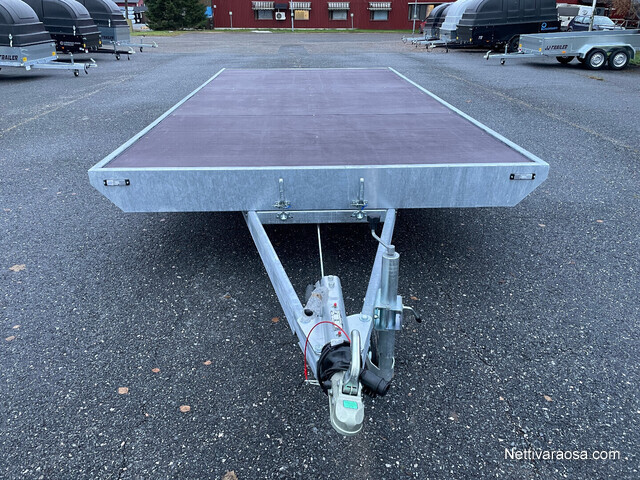 JJ-Trailer 5500FB-27 on lavetti / Autotrailer. Lavakoko on tässä pienemmässä 2100x5500, kokonaispaino 2700kg ja kantavuus 2000kg. Kaikissa 2700kg kärryissä on kippi vakiona.