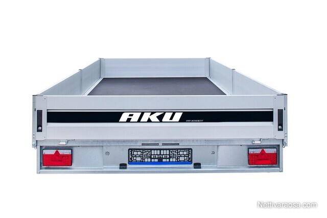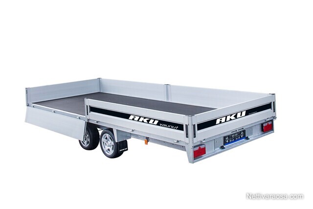 Vaunun alla ajoramppien kuljetuskiskot valmiina. Ajoramppeja voi käyttää myös sivulastauksessa. Rekisterikilvenvalo on suojattu. Sivulaidat (35 cm eloksoitusta aluminista , irroitettavat) on tässä varusteena. Sivulaitojen lavalukot upotettu. Irroitettavat lavatolpat. (kuvassa näkyvät alumiinivanteet on lisävaruste)