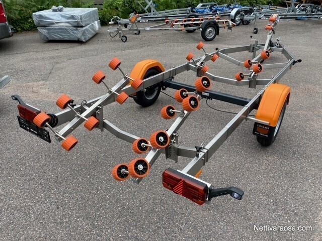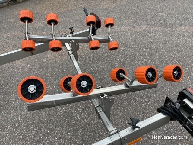 Ruostumattomasta teräksestä valmistetun trailerin materiaali jopa 25% kevyempi, jolloin jää enemmän kantavuutta veneen painolle.
